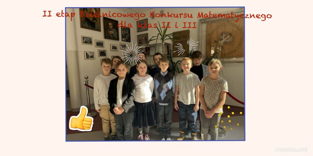 Dnia 12 marca 2026 r. uczniowie z klas drugich i trzecich pojechali do SP nr 172 na Dzielnicowy Konkurs Matematyczny. Na zdjęciu nasi reprezentanci.