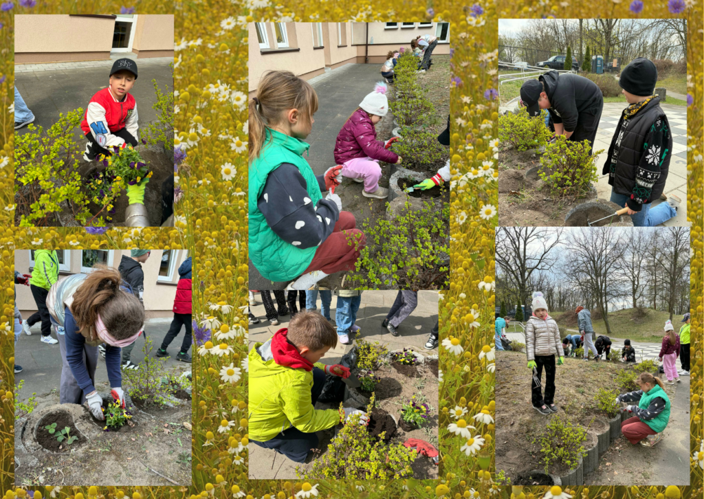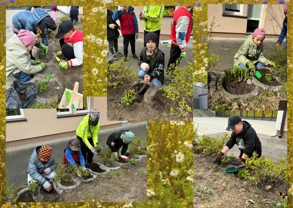 Klasa 2a rozpoczęła obchody Dnia Ziemi od wyjątkowej i bardzo potrzebnej inicjatywy – posadzenia kwiatów obok swojej sali. Uczniowie z dużym zaangażowaniem przystąpili do pracy. Najpierw starannie wyrywali chwasty, aby oczyścić teren, a następnie przygotowali glebę pod nowe rośliny. Wspólnie sadzili kwiaty, dbając o to, by każda roślina miała odpowiednie miejsce do wzrostu.